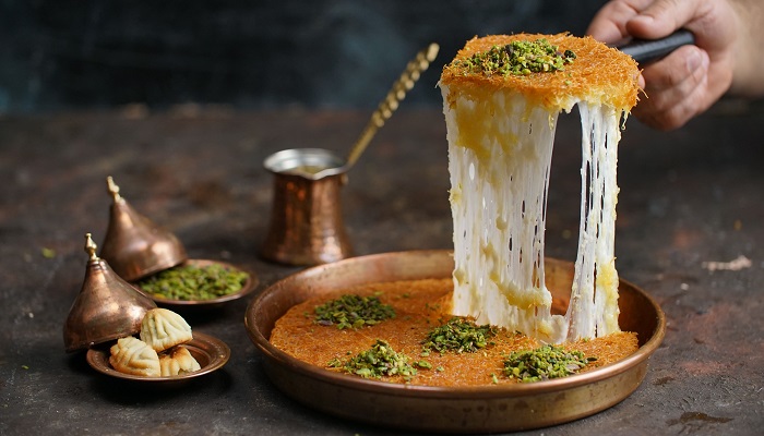 - کنافه: دسر معروف خاورمیانهای که از پنیر شیرینشده و خمیر مخصوص تهیه میشود.